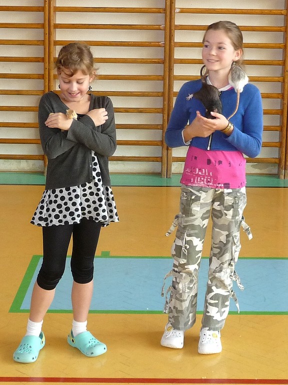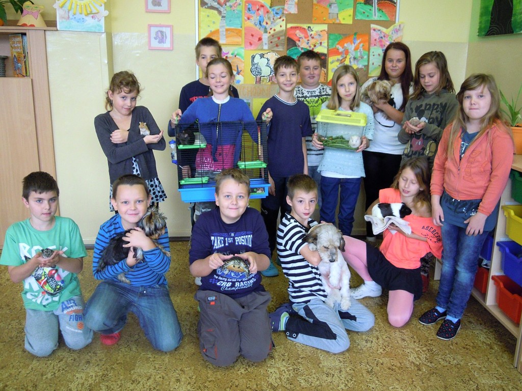 K oslavě tohoto významného dne si třídy prvního stupně uspořádaly projektový den. Děti si mohly donést do školy svého domácího mazlíčka. Sešla se nám zvířátka různých druhů … savci, ptáci, plazi, ryby …, ale i zvířátka plyšová či gumová. Do druhé třídy nám přišla Eliška ukázat svého pejska ŇUŇU a Kubík Fančo pejska Bonnyho. Lenička si donesla křečka Zuzanku od své kamarádky, za kterým se chodí mazlit. Z křeččí rodinky nám přinesl ukázat svého mazlíka Denis Otipka, o kterém nám povykládal spoustu zajímavých informací. Z jejich rodiny nám představil svého mazlíka i Daniel Král. Ze zástupců fretek navštívila naší třídu fretka Adélka od Danečka Weisse. Nikolasek Baďo přinesl v kleci zástupce ptačí říše andulky Tomáše a Pepu. Poté přišla na řadu i další zvířátka, která nejsou náročná na česání a krmení. Jejich pelíškem je postýlka : spousta plyšových zajíčků, medvídků, pejsků …. Dnešní den se nám moc líbil a zvířátka ve třídě a ve škole nám přinesla radost.
