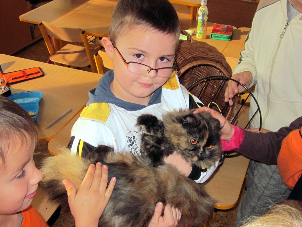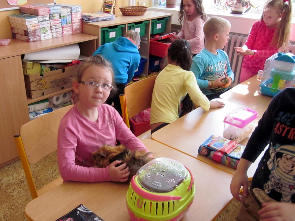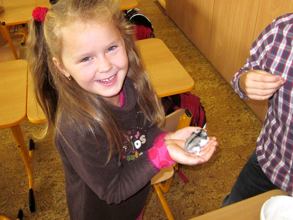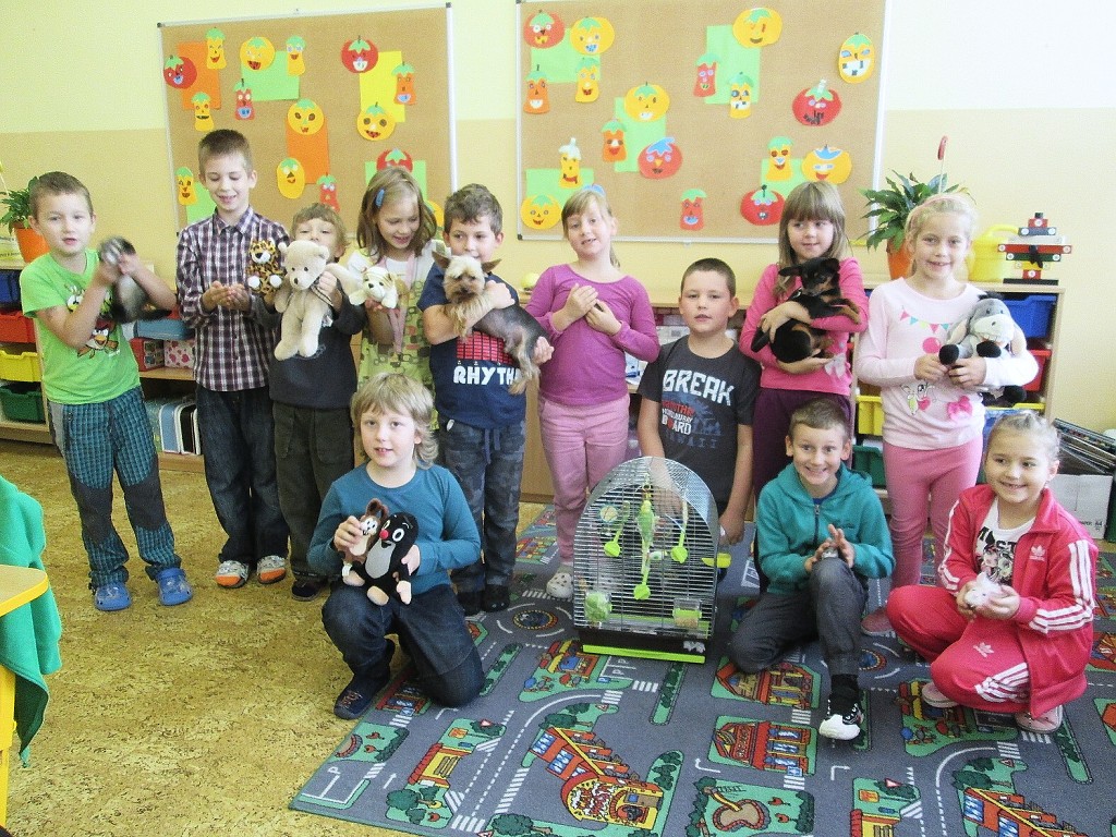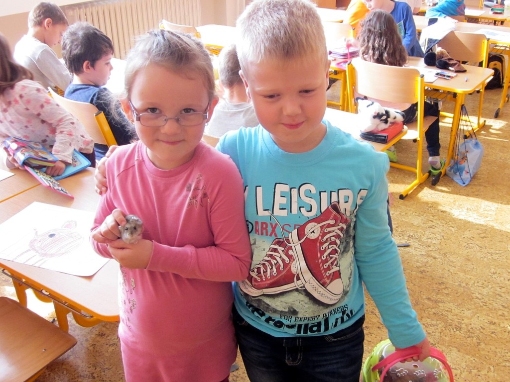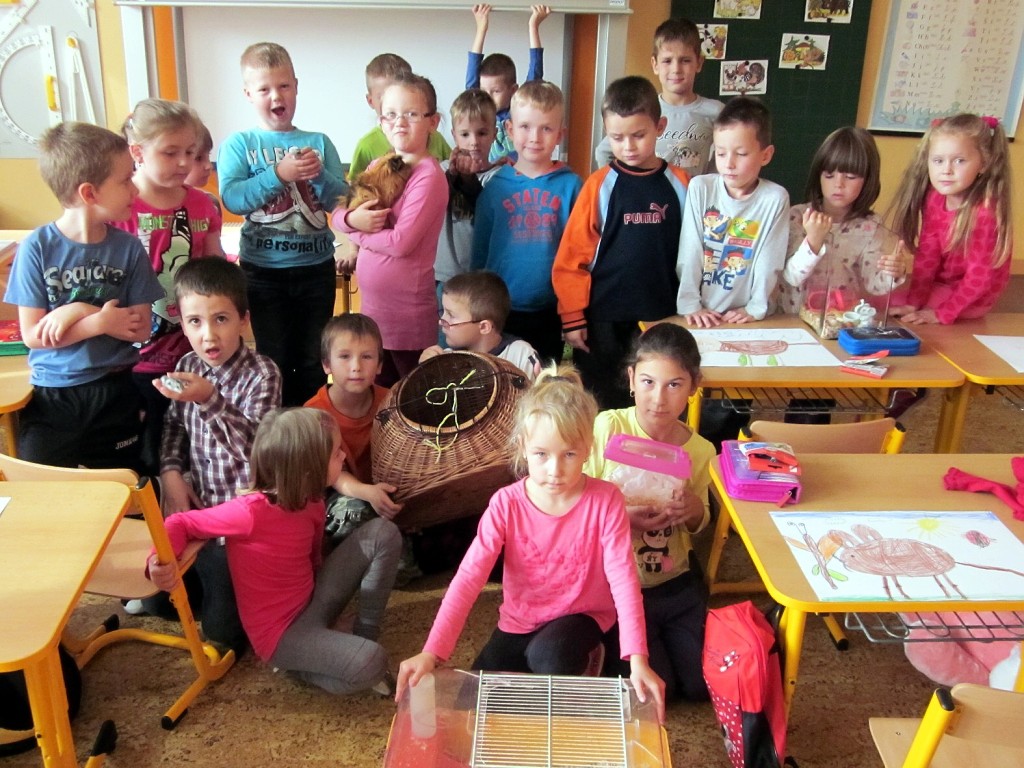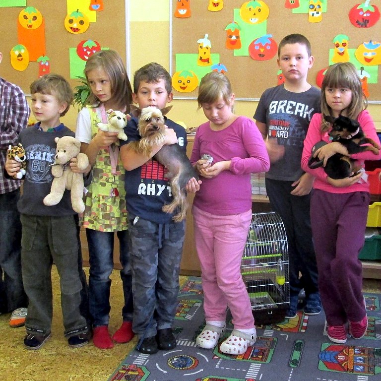 K oslavě tohoto významného dne si třídy prvního stupně uspořádaly projektový den. Děti si mohly donést do školy svého domácího mazlíčka. Sešla se nám zvířátka různých druhů … savci, ptáci, plazi, ryby …, ale i zvířátka plyšová či gumová. Do druhé třídy nám přišla Eliška ukázat svého pejska ŇUŇU a Kubík Fančo pejska Bonnyho. Lenička si donesla křečka Zuzanku od své kamarádky, za kterým se chodí mazlit. Z křeččí rodinky nám přinesl ukázat svého mazlíka Denis Otipka, o kterém nám povykládal spoustu zajímavých informací. Z jejich rodiny nám představil svého mazlíka i Daniel Král. Ze zástupců fretek navštívila naší třídu fretka Adélka od Danečka Weisse. Nikolasek Baďo přinesl v kleci zástupce ptačí říše andulky Tomáše a Pepu. Poté přišla na řadu i další zvířátka, která nejsou náročná na česání a krmení. Jejich pelíškem je postýlka : spousta plyšových zajíčků, medvídků, pejsků …. Dnešní den se nám moc líbil a zvířátka ve třídě a ve škole nám přinesla radost.