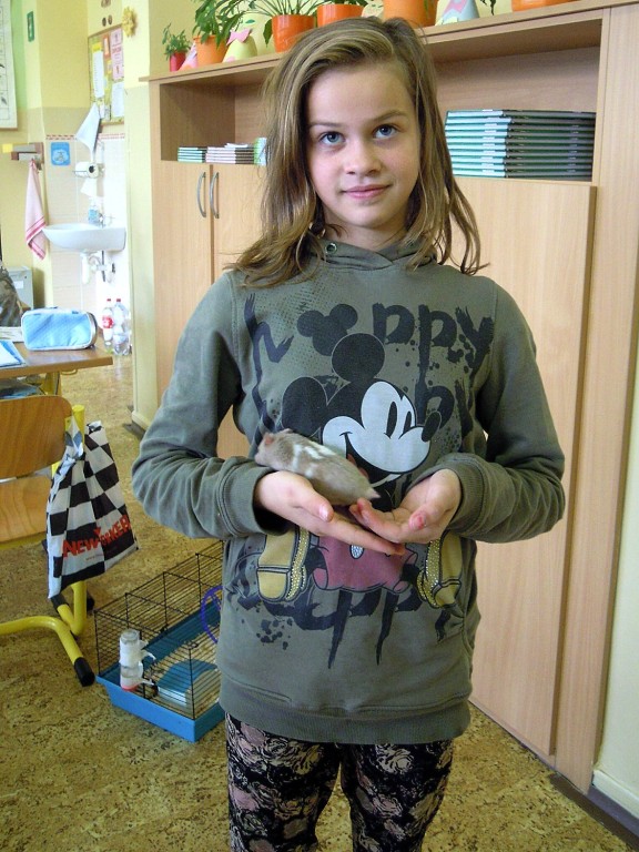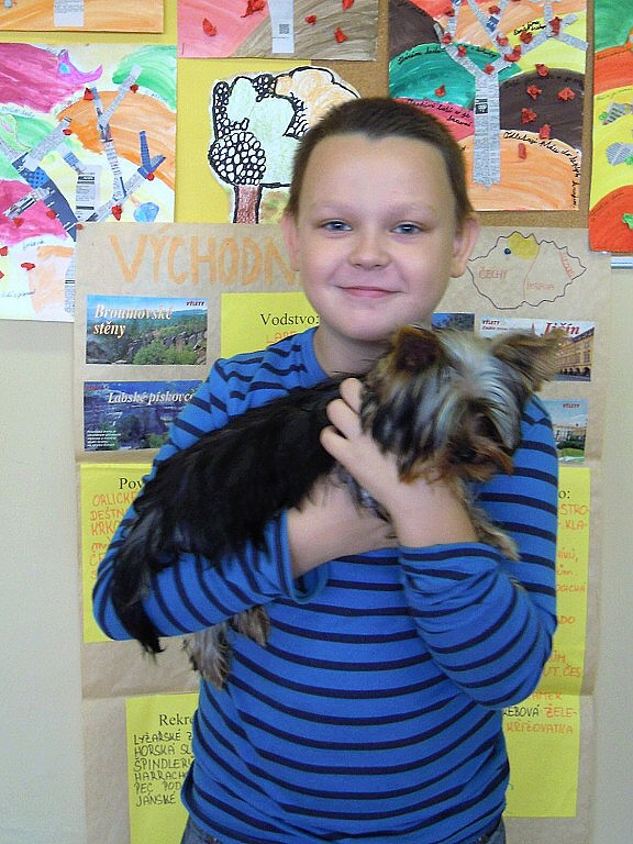 K oslavě tohoto významného dne si třídy prvního stupně uspořádaly projektový den. Děti si mohly donést do školy svého domácího mazlíčka. Sešla se nám zvířátka různých druhů … savci, ptáci, plazi, ryby …, ale i zvířátka plyšová či gumová. Do druhé třídy nám přišla Eliška ukázat svého pejska ŇUŇU a Kubík Fančo pejska Bonnyho. Lenička si donesla křečka Zuzanku od své kamarádky, za kterým se chodí mazlit. Z křeččí rodinky nám přinesl ukázat svého mazlíka Denis Otipka, o kterém nám povykládal spoustu zajímavých informací. Z jejich rodiny nám představil svého mazlíka i Daniel Král. Ze zástupců fretek navštívila naší třídu fretka Adélka od Danečka Weisse. Nikolasek Baďo přinesl v kleci zástupce ptačí říše andulky Tomáše a Pepu. Poté přišla na řadu i další zvířátka, která nejsou náročná na česání a krmení. Jejich pelíškem je postýlka : spousta plyšových zajíčků, medvídků, pejsků …. Dnešní den se nám moc líbil a zvířátka ve třídě a ve škole nám přinesla radost.