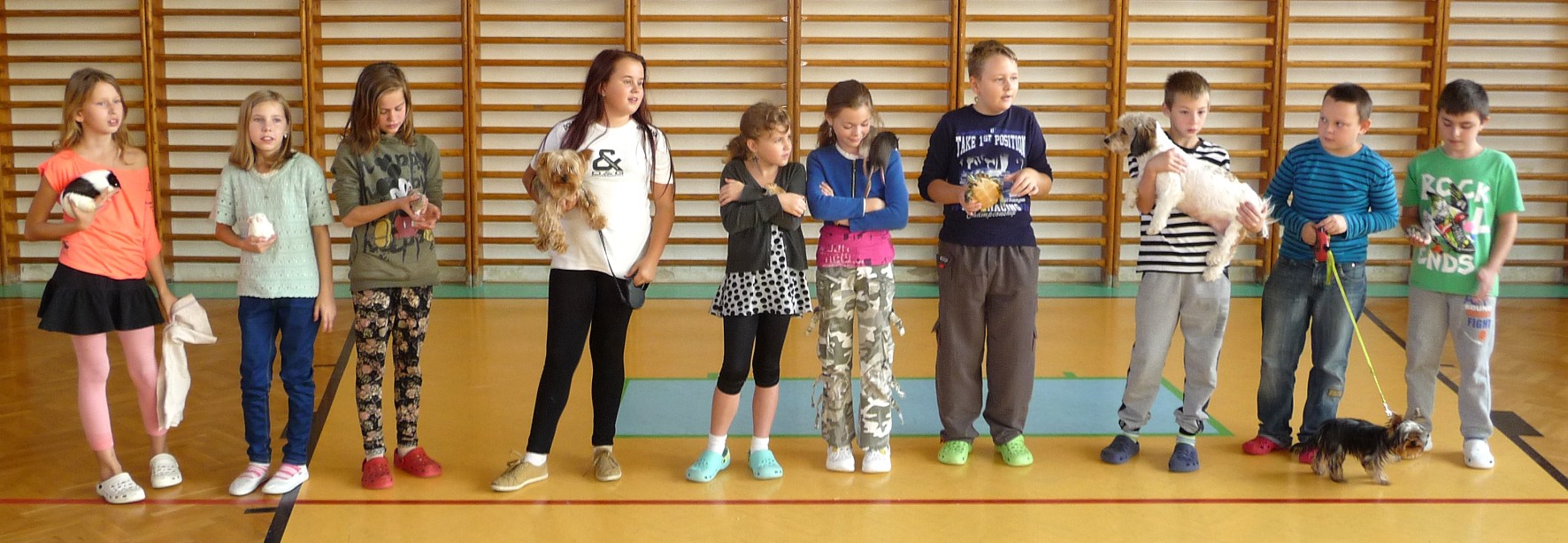 Ve středu 8. října 2014 to vypadalo na 1. stupni naší školy jako v zoologické zahradě. Jako každoročně jsme oslavili den zvířat. Vždyť většina z nás má doma domácího mazlíčka z říše zvířat a v tento den šel s námi do školy. Mohli jsme ho tak představit svým spolužákům. A to se všem velmi líbilo. Jen v naší třídě byli tři psi, kteří se však chovali velmi způsobně. Dále potkani, křečci, želva, morčata. No prostě zvěřinec jak má být. Fotografie i Vám představí naše mazlíky.