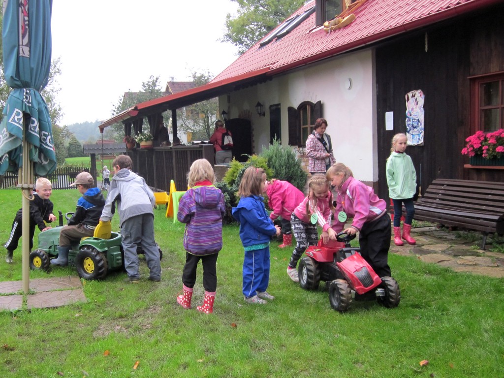 I když nás počasí nemělo rádo, přesto na ranč odcestovalo vlakem 26 dětí a 19 rodičů. Společně jsme si užili od prohlídky stájí, pečování o koníky, jízdy na koních, grilování párků až po vědomostní a pohybové hry.