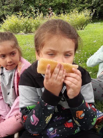 Na louce si děti zahrály hry a hledaly ukrytý poklad. A něco nám zavonělo do nosu-šťavnaté opečené výborné špekáčky. Mńam.