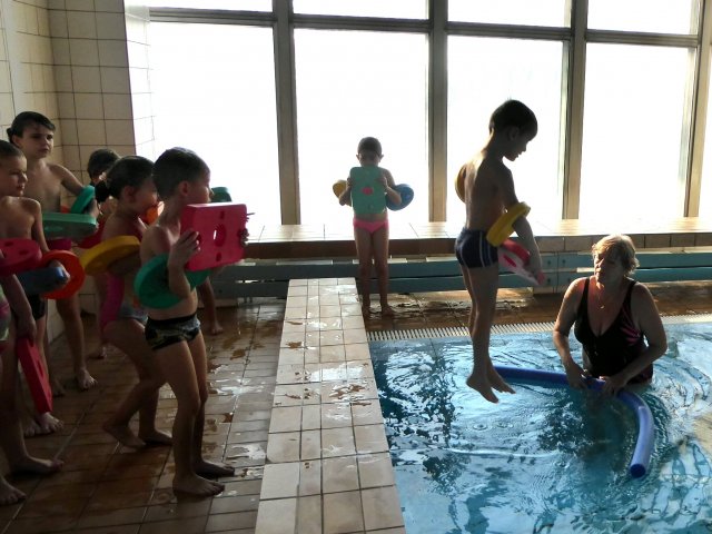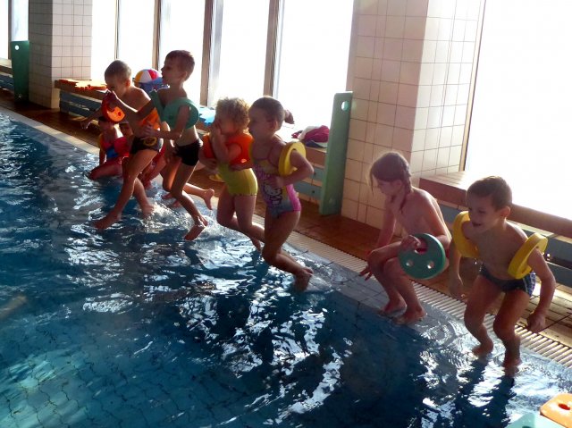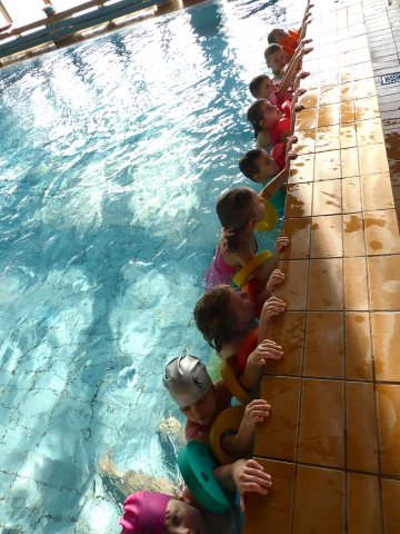 Děti jsou rozděleny do dvou skupin a tráví příjemnou hodinku ve vodě pod dohledem cvičitelky. Děti se učí sžít s vodou, zbavují se strachu z vody formou her. Ti otrlejší již skáčou do vody, splývají, potápějí se, plavou s podložkami a dokonce i soutěží. Před koncem hodiny mají chvilku pro volnou zábavu. Po plavání jsou děti hodnoceny a odchází do sprchy a poté do šatny se převlékat. Kurz plavání budou děti navštěvovat každé dopolední úterý po dobu tří měsíců.