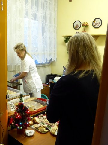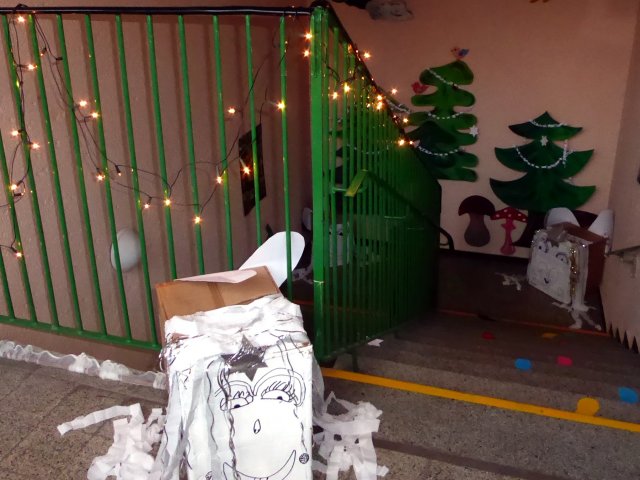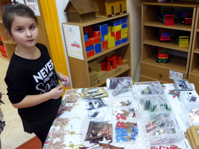 Pro všechny byl připraven obchůdek s keramikou, či pamlsky pro psy z darkovského útulku. Na závěr všechny děti zazpívaly vánoční koledy za doprovodu kytary. Paní učitelka Jana všem popřála "krásné vánoce" a pro radost dětem místo sněhu nad hlavami padaly papírové dolary.
