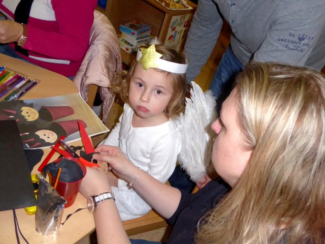 Dnešní "Andělov a Čertov" jsme si všichni - děti i dospělí užili. Děti si společně s rodiči vyrobily různé vánoční dekorace. V pekelném "bufíku" nakoupili mlsání a pobavili se s veselým čertíkem.
