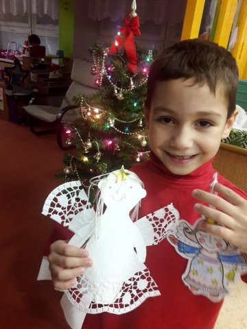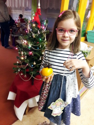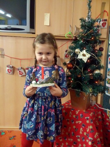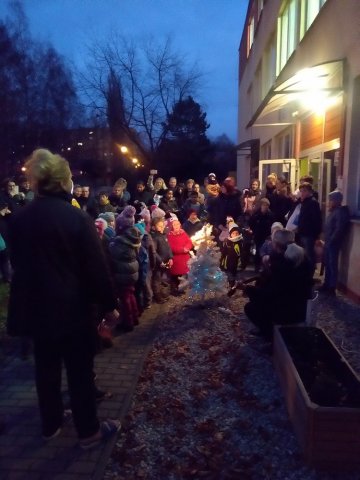 Děti si společně s rodiči vyrobily vánoční dekorace - lucerničky, svícny, andílky... Společně si pak venku u rozsvíceného stromečku zazpívali koledy.