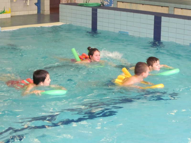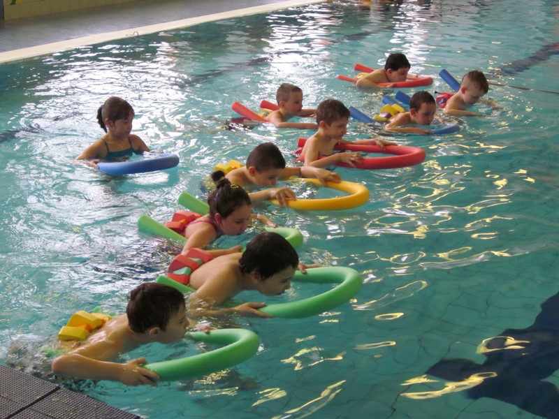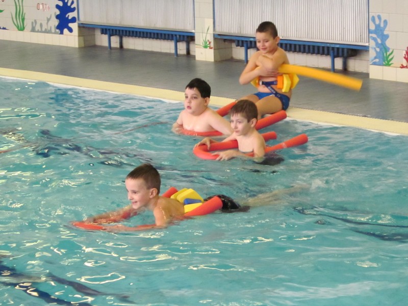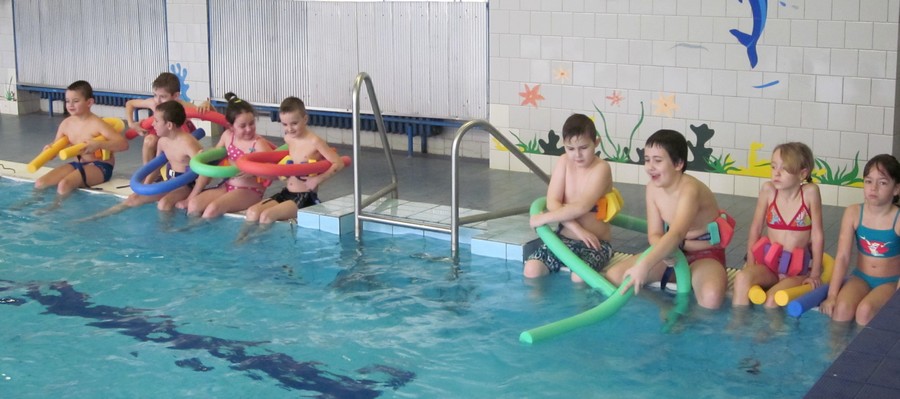Plavecký výcvik začíná v druhém ročníku. Někteří se bojí, ale není čeho. S páskem kolem těla, žížalou a případně i deskou jsou všichni jako nepotopitelné koráby. Plují po hladině, kormidlují nohama a takto vybaveni se pomaloučku učí druháci plavat. Pak jen stačí sundat pásek a přidržovat se desky a už vyplouváme. Jsme v polovině výcviku a výsledky u malých plaváčků jsou z kapitánského můstku vidět.