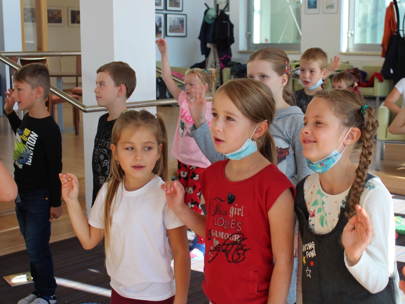 Děti se také podívaly do samotné knihovny a v oddělení pro nejmenší si chvíli prohlížely i četly knížky.