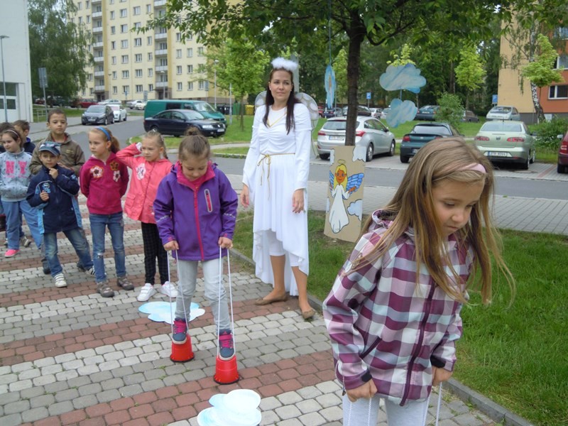 Na děti čekaly u každého stanoviště pohádkové postavičky, kde plnily různé úkoly a soutěže. O taneční zábavu se postaral velmi známý klaun Hopsalín.