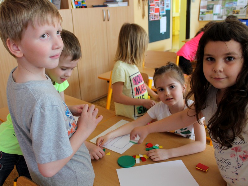 Tvary barevné, velké i malé každý předškolák už zná. 17. května odpoledne se budoucí prvňáci rozdělili do skupinek a třídili hromádku obdélníků, čtverců, kruhů i trojúhelníků. Protože jim to šlo opravdu na výbornou, tak kouzelná tabule vykouzlila překvapení. Šikovné děti si ještě vyplnily pracovní list s geo úkoly a pak si mohly pohrát se stavebnicí Lego a sestavit s tvarů pěkné barevné míče.