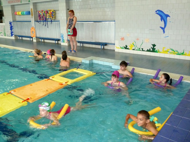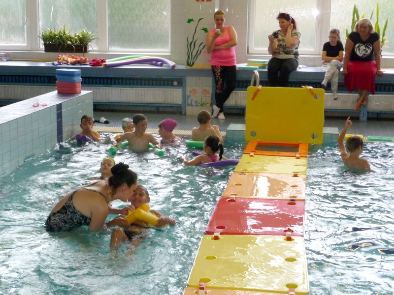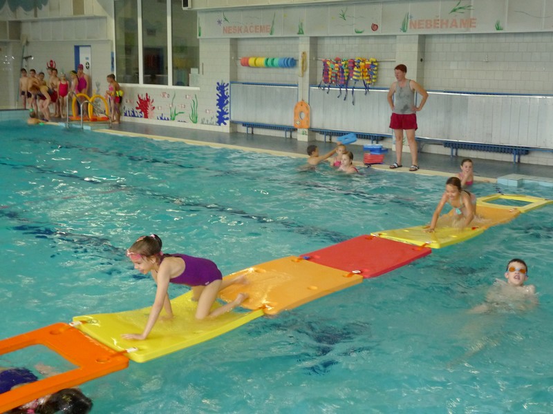 Někteří plavou sami, jiní ještě s pomůckou, ale vody se nebojí nikdo. Na poslední plavání se přišli podívat také rodiče, aby viděli pokroky svých dětí během půlročního výcviku. Děti předvedly některé plavecké styly, skoky do vody, plavání s žížalami, destičkami a na závěr tradiční opičí vodní dráha přes celý bazén.