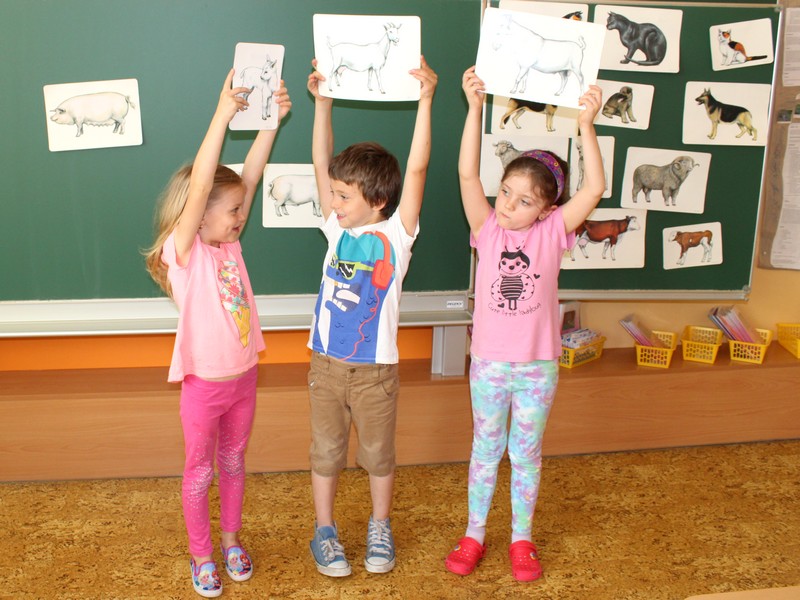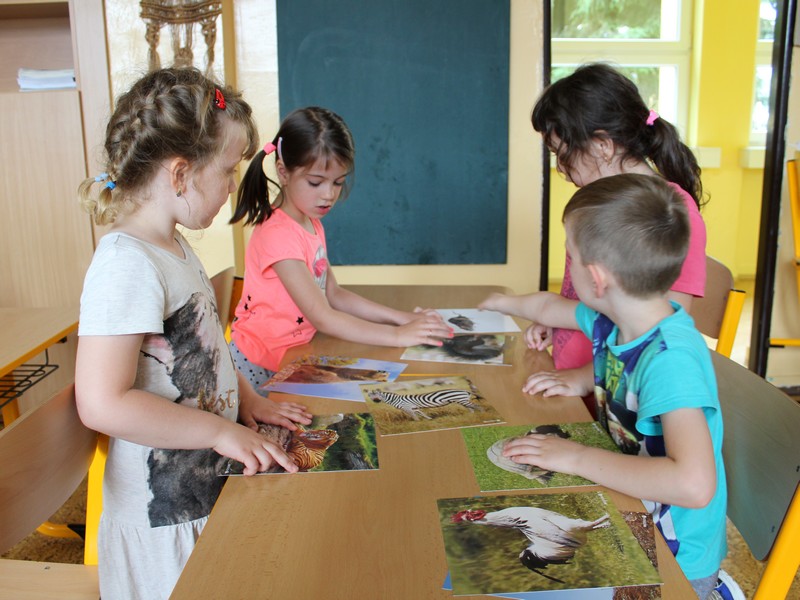 Poznávání domácích zvířátek, rozdělování ve skupinkách na zvířata domácí, volně žijící a zvířata exotická - to byly pro předškoláky úkoly jednoduché. I na interaktivní tabuli plnili různá cvičení a na závěr úkoly v pracovním listě. Také jsme si zahráli na zvířecí pěvecký sbor a šlo nám to pěkně.