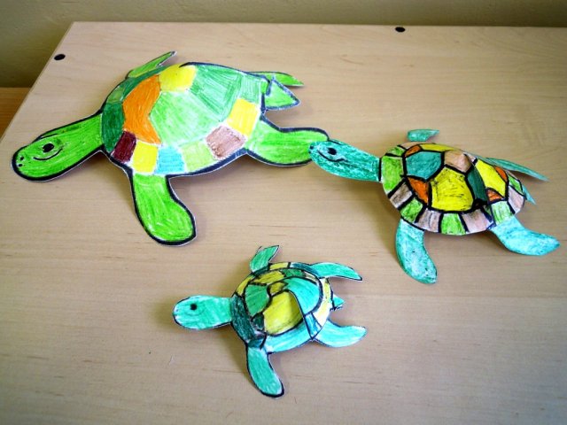 I přes nepřízeň počasí se nám cesta do stanice vyplatila a líbila. Po návratu do školy jsme si vyrobili sympatické želvy, které se nám povedly. Posuďte sami.