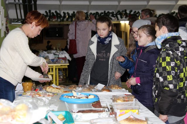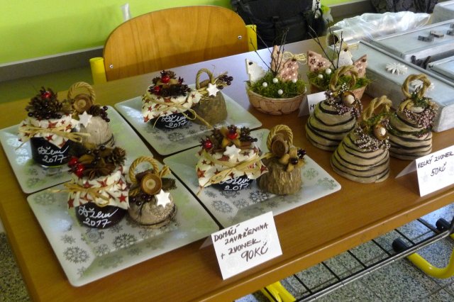 Hned u vchodu přiláká návštěvníky lákavý bufet vystavený dobrůtkami sladkými i slanými napečenými ochotnými maminkami. Touto cestou děkujeme všem maminkám, které si v předvánočním shonu našly čas pro náš jarmarkový bufet.
