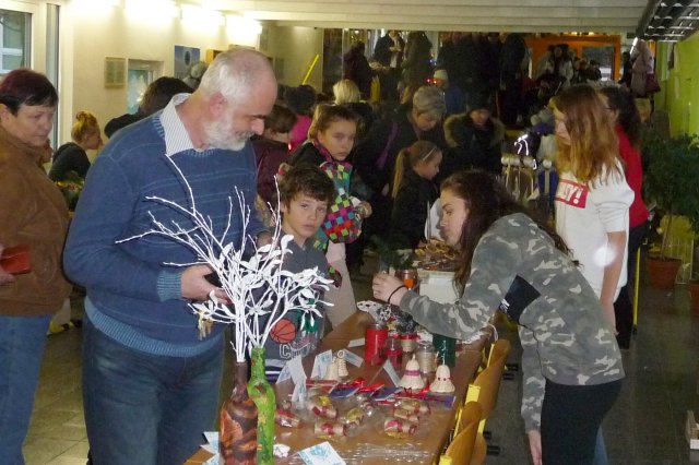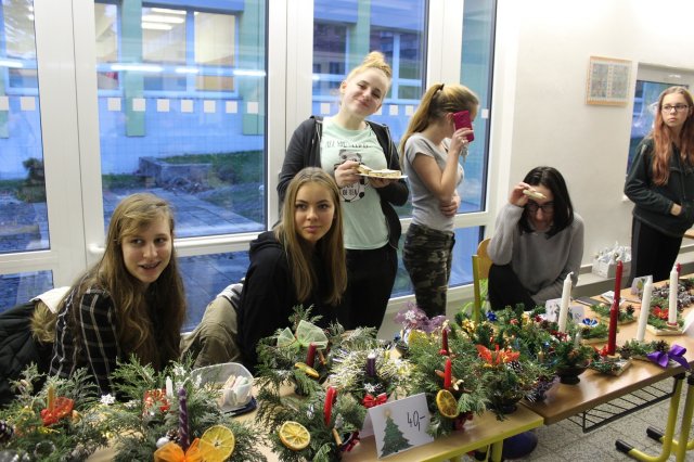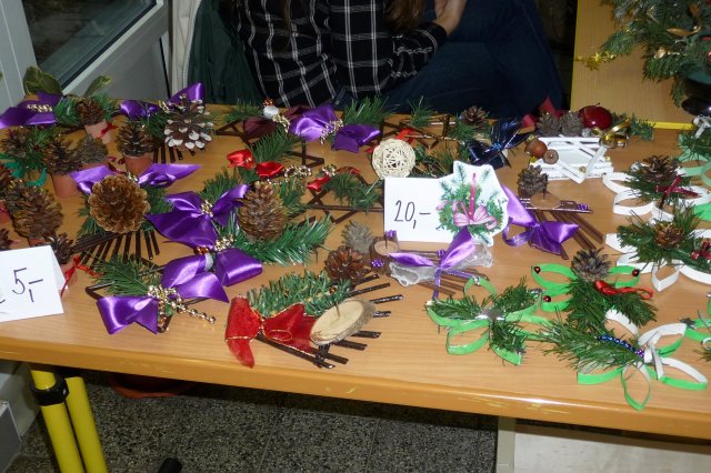 Začátek adventního času patří tradičně jarmarkování. Hlavní chodba školy se promění v tržiště a stoly ve stánky plné vánočních svícnů, ozdůbek, stromečků, budek, andílků, dárkových tašek, zápichů zdobených, keramických výrobků i perníčků, přáníček, dokonce i čertů.