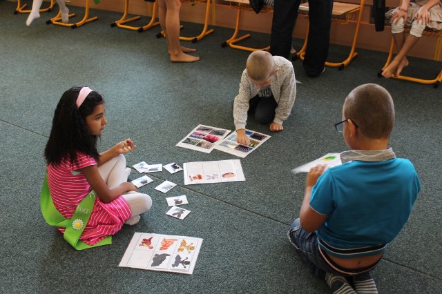 ve třídě přes učebnice.