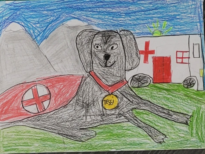 Přišla si se svou lektorkou pro výtvarné práce do soutěže v malování obrázků na téma "Pes záchranář v akci", do které se zapojily děti z III. oddělení ŠD. Obrázky budou od ledna do poloviny února 2023 vystaveny v Regionální knihovně Karviná-Mizerov, oddělení pro děti a mládež, kde mohou zdejší čtenáři hodnotit a hlasovat. Necháme se překvapit.