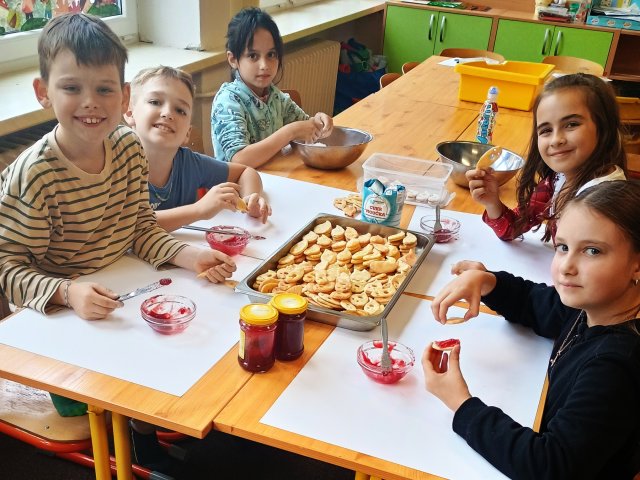 Minulý školní rok to byly perníčky, letos jsme si upekli duchy z lineckého těsta.